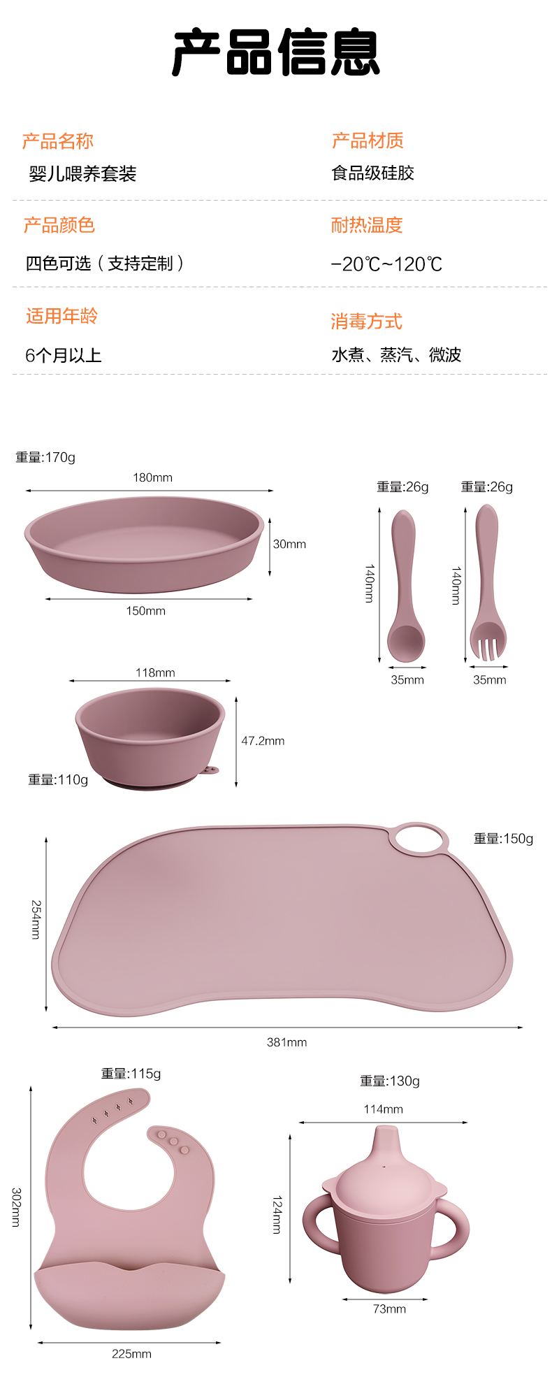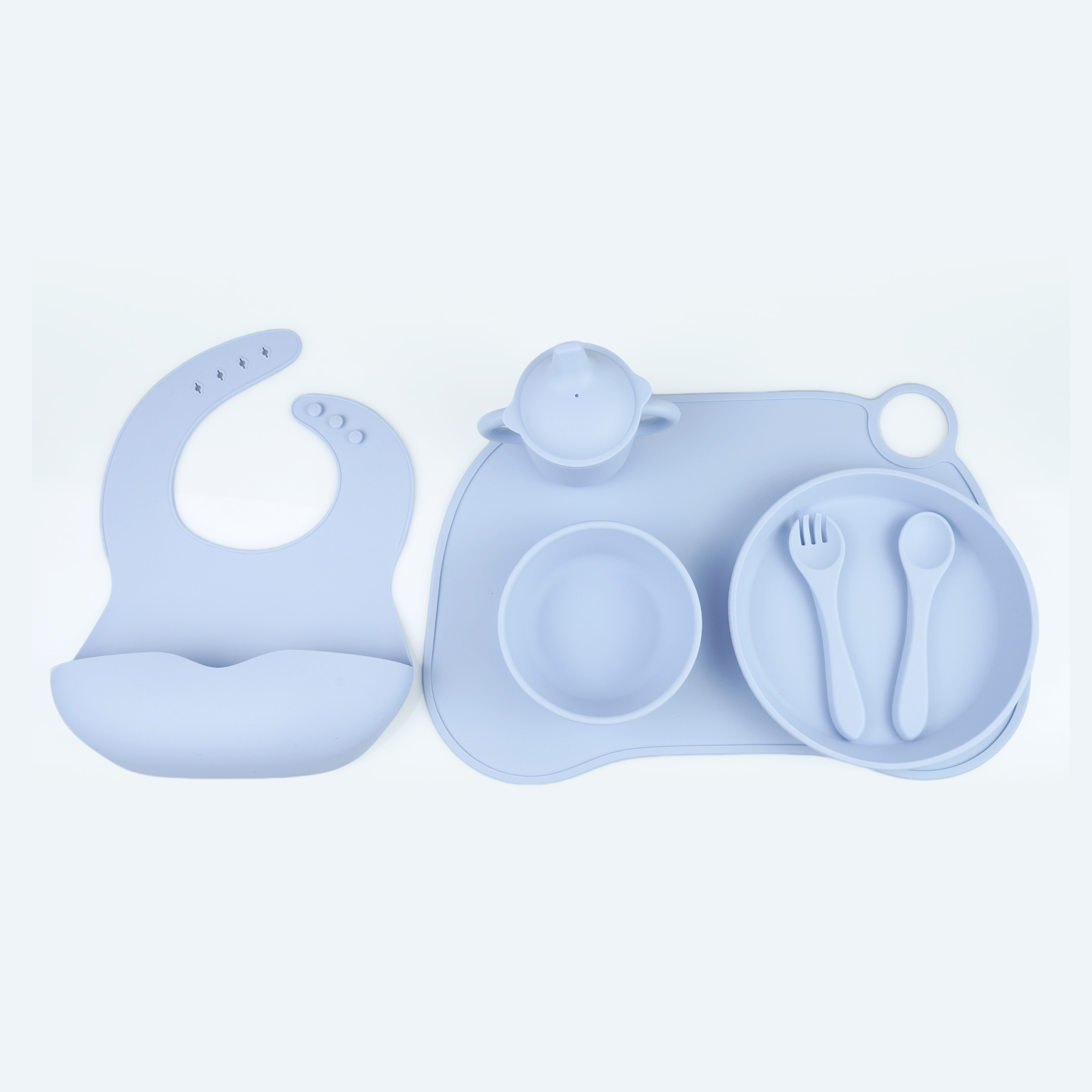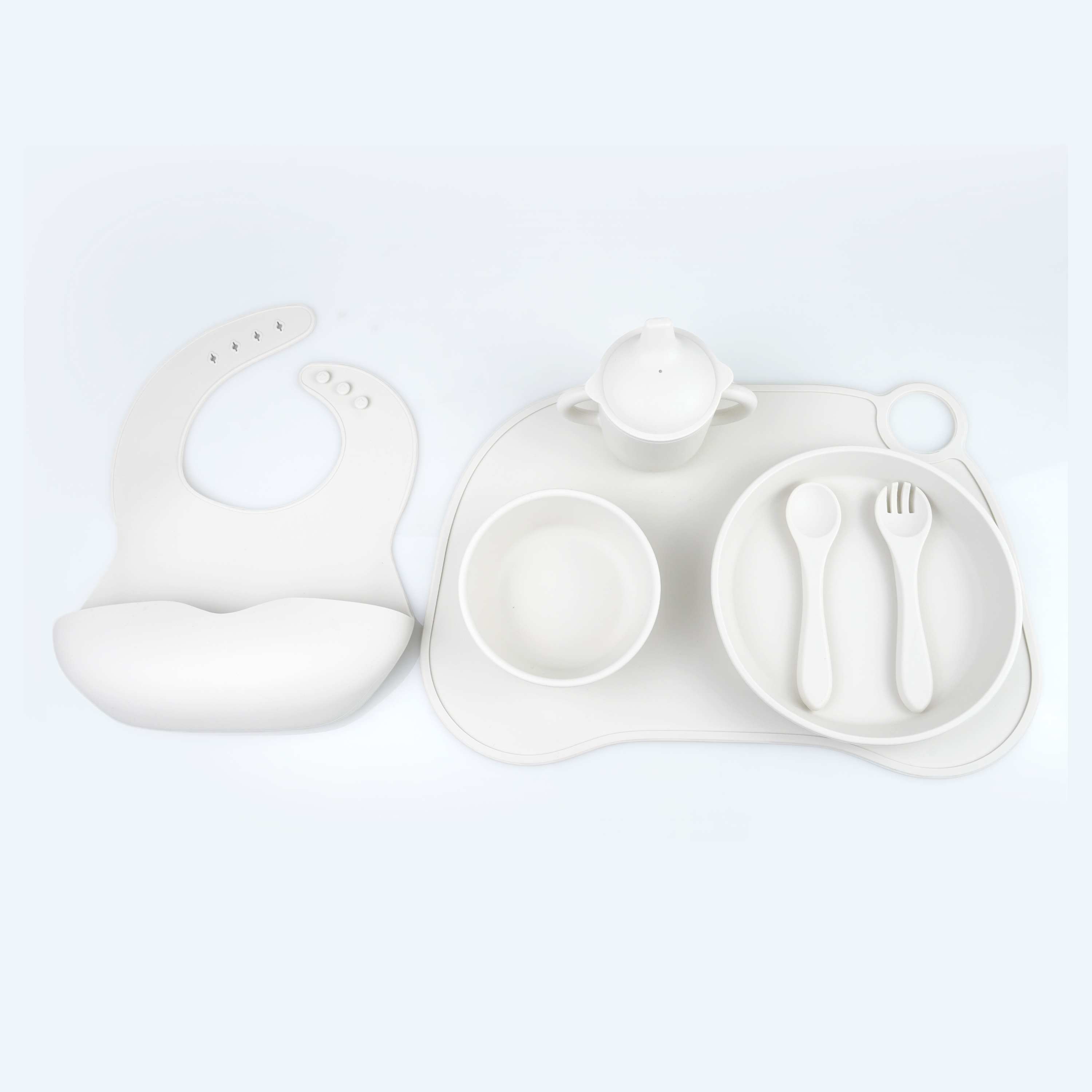 口水兜+碗+叉勺+餐盤+學飲杯+餐墊