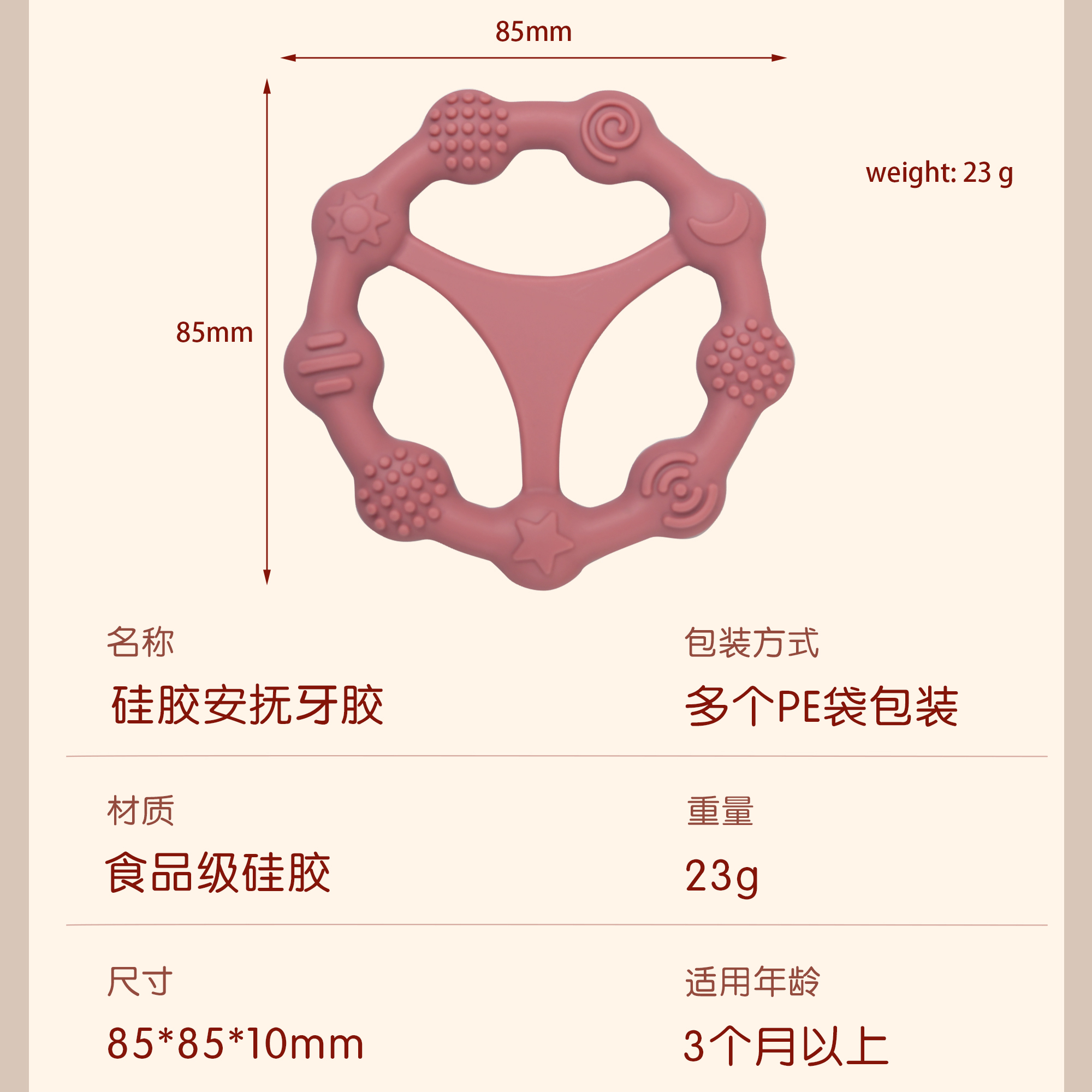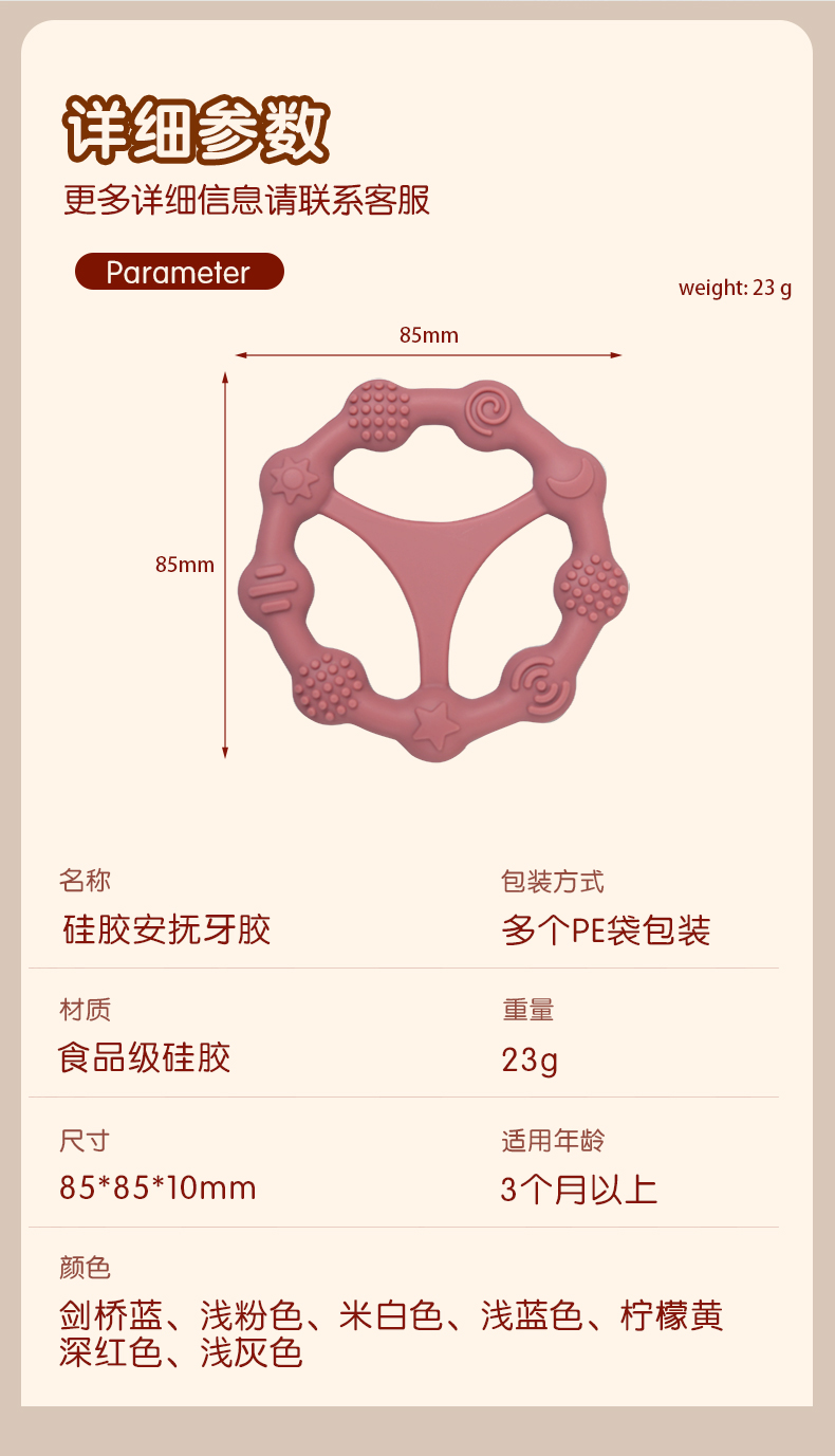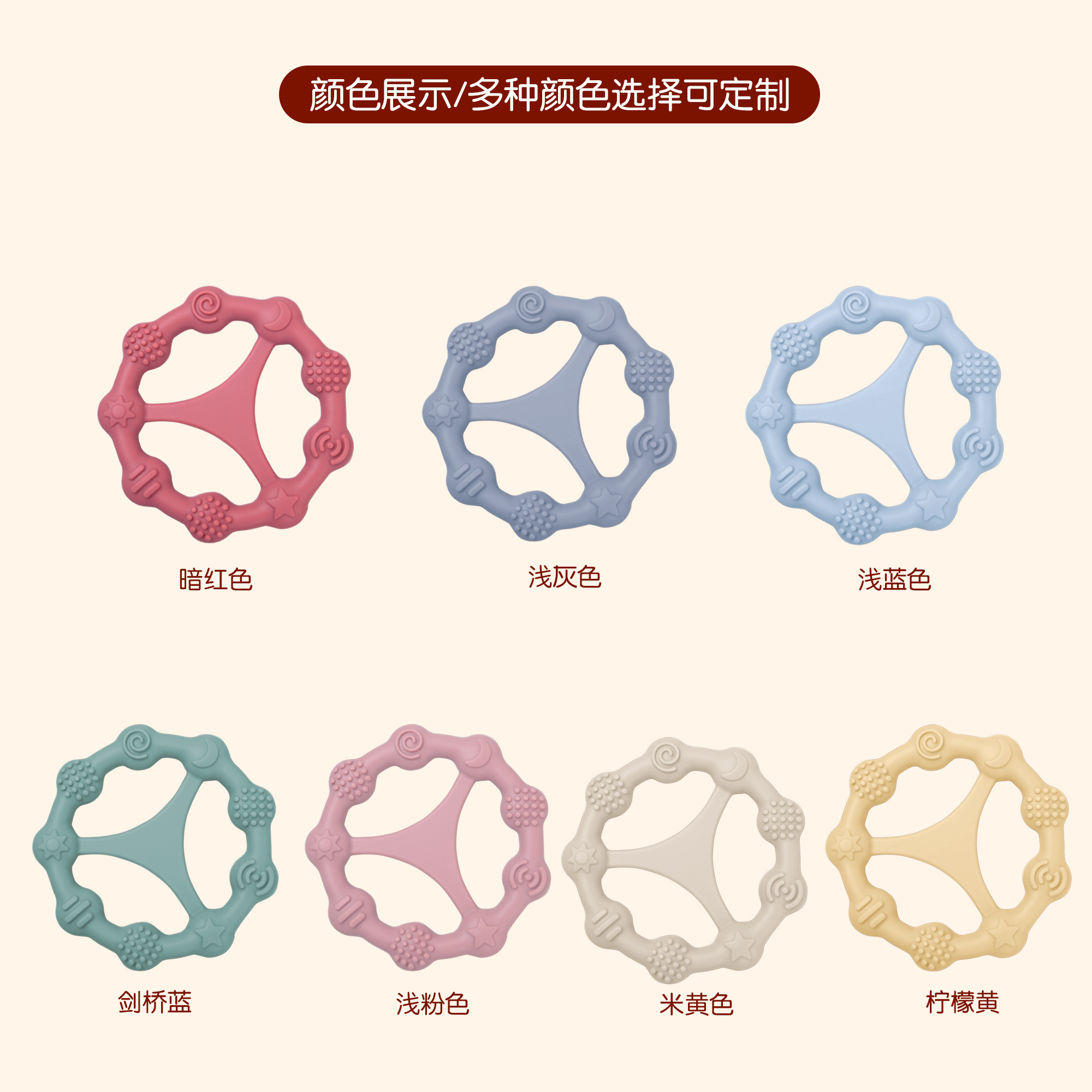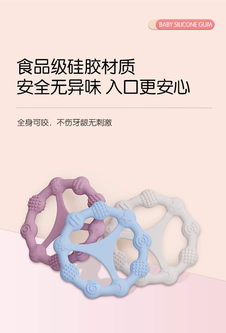 您的位置:首頁 > 產品中心 > 硅膠嬰童用品 > 牙膠 > 嬰兒硅膠牙膠防吃手食品級嬰兒玩具配件母嬰牙膠
